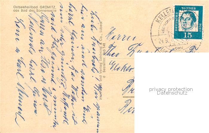 73277623 alte Postkarte Groemitz Ostseebad Strand Seebruecke Kurmittelhaus Strandhalle postalisch gelaufen Erhaltung siehe scans [LiesaD40] KatCode: 11110001055016