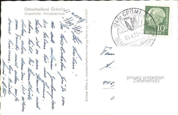 71983267 alte Postkarte Groemitz Ostseebad Strandhalle Palmenterrasse postalisch gelaufen Erhaltung siehe scans KatCode: 11110001055016
