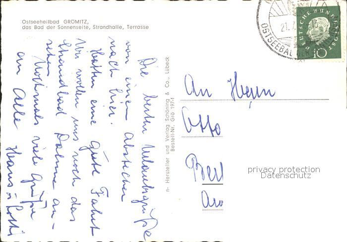71991859 alte Postkarte Groemitz Ostseebad Strandhalle Terrasse postalisch gelaufen Erhaltung siehe scans KatCode: 11110001055016
