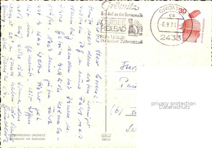 72572713 alte Postkarte Groemitz Ostseebad Strandpartie mit Seebruecke postalisch gelaufen Erhaltung siehe scans [AndreD76] KatCode: 11110001055016
