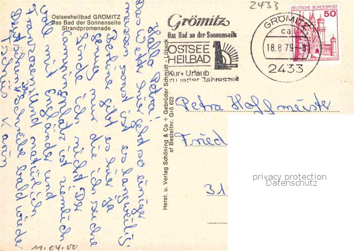 72918540 alte Postkarte Groemitz Ostseebad Strandpromenade postalisch gelaufen Erhaltung siehe scans [FriedD77] KatCode: 11110001055016