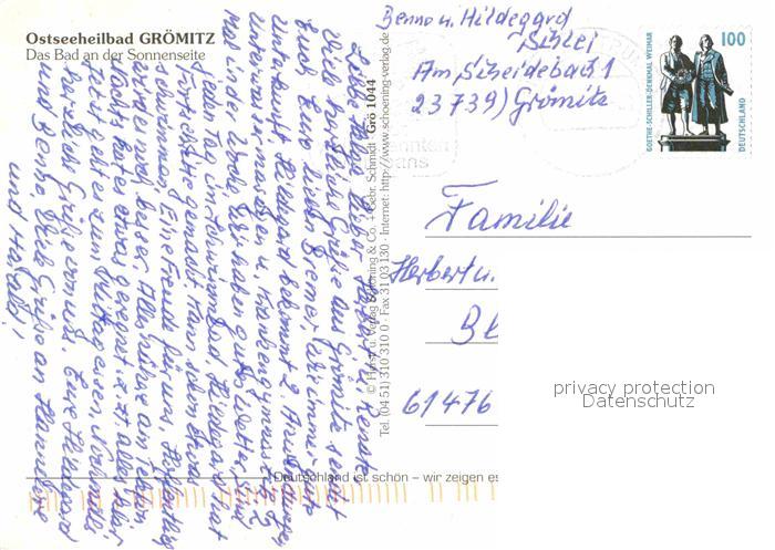 72807568 alte Postkarte Groemitz Ostseebad Uferpromenade Strand Hafen postalisch gelaufen Erhaltung siehe scans [FriedD77] KatCode: 11110001055016
