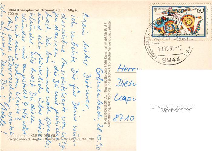 73185239 alte Postkarte Groenenbach Bad Fliegeraufnahme Kneippkurort postalisch gelaufen Erhaltung siehe scans [LiesaD40] KatCode: 11110009778144