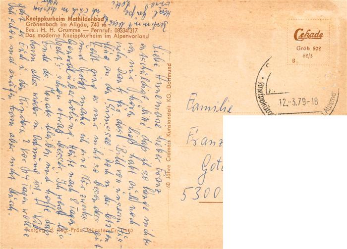73944137 alte Postkarte Groenenbach Bad Fliegeraufnahme mit Kneippkurheim Mathildenbad postalisch gelaufen Erhaltung siehe scans [WerneD78] KatCode: 11110009778144