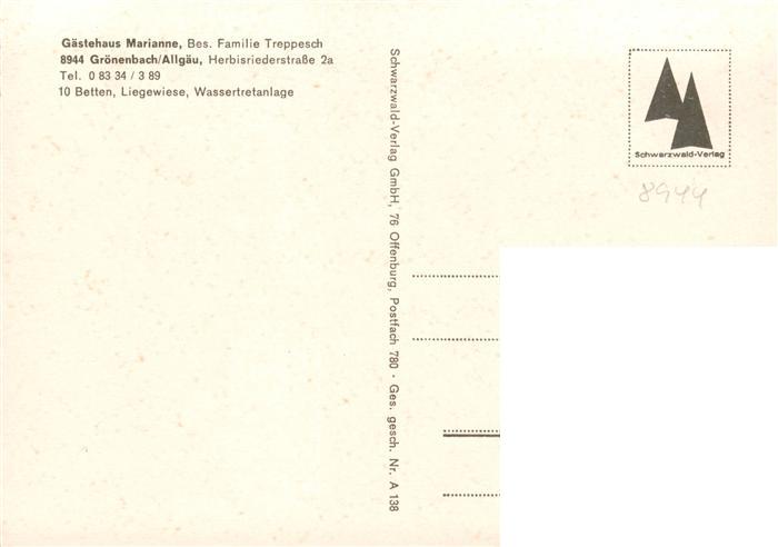 73883205 Groenenbach Bad Gaestehaus Marianne postalisch nicht gelaufen Erhaltung siehe scans [FriedD77] KatCode: 11110009778144