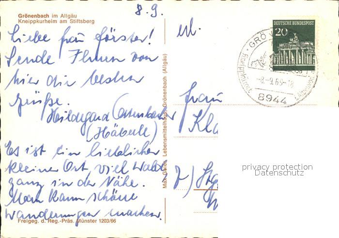 72412315 alte Postkarte Groenenbach Bad Kneippkurheim am Stiftsberg postalisch gelaufen Erhaltung siehe scans KatCode: 11110009778144
