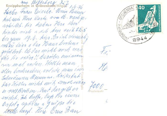 73914397 alte Postkarte Groenenbach Bad Kneippkurheim Park postalisch gelaufen Erhaltung siehe scans [WerneD78] KatCode: 11110009778144