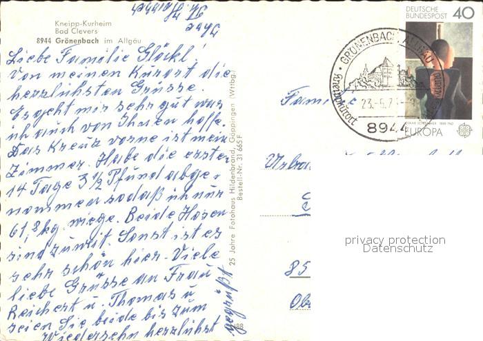 72289331 alte Postkarte Groenenbach Bad Kurheim Bad Clevers postalisch gelaufen Erhaltung siehe scans KatCode: 11110009778144