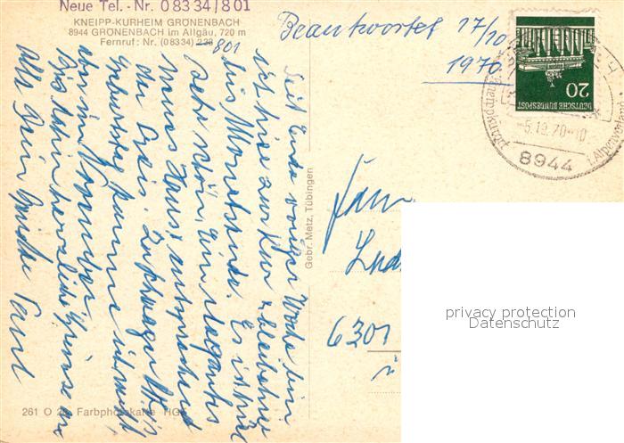 73040799 alte Postkarte Groenenbach Bad Kurheim Groenenbach postalisch gelaufen Erhaltung siehe scans [NatalD47] KatCode: 11110009778144