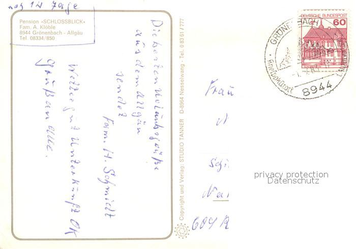 73727238 alte Postkarte Groenenbach Bad Pension Schoenblick Gaststube Seepartie Panorama postalisch gelaufen Erhaltung siehe scans [WerneD78] KatCode: 11110009778144