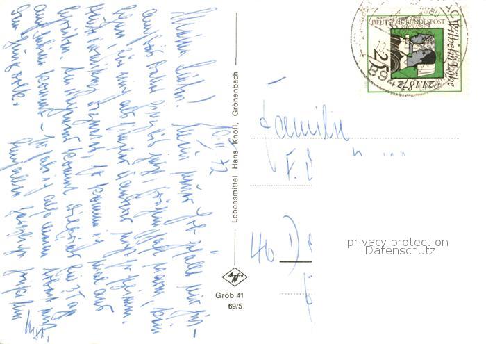 73072228 alte Postkarte Groenenbach Bad Schloss Marktplatz Kneippkurheim Kirche Mathildenbad Kurheim am Schlosspark Bad Clevers postalisch gelaufen Erhaltung siehe scans [WerneD78] KatCode: 11110009778144