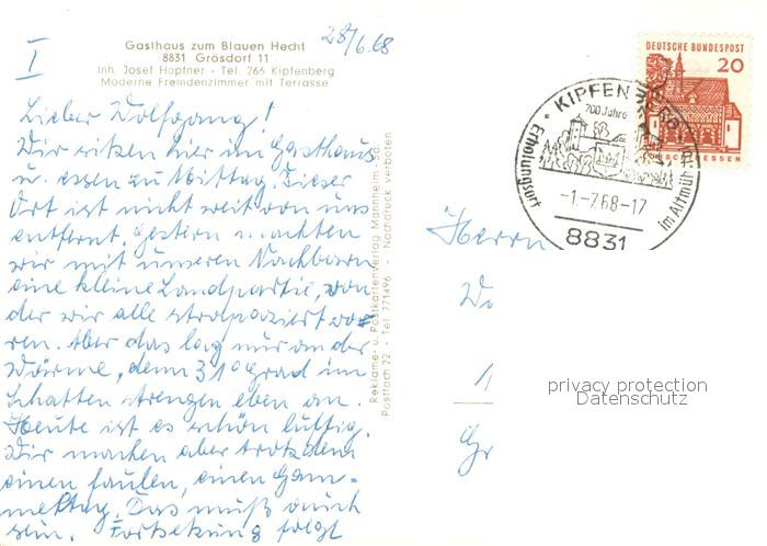73670009 alte Postkarte Groesdorf Gasthaus zum Blauen Hecht postalisch gelaufen Erhaltung siehe scans [WerneD78] KatCode: 11110009176138