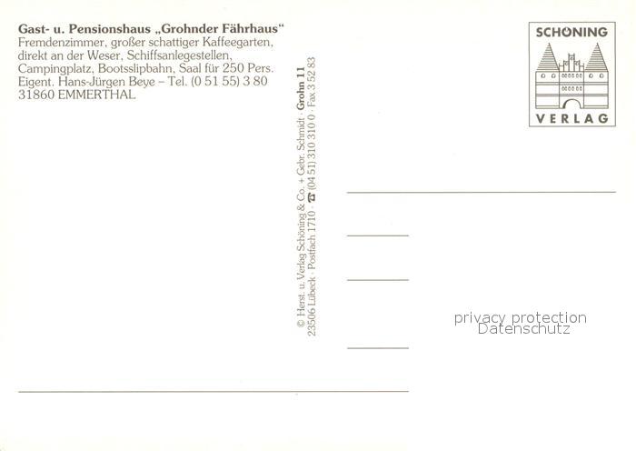 73723824 Grohnde Gasthaus Pension Grohnder Faehrhaus Faehre Schiffsanleger Kaffeegarten Burg Campingplatz Ponyreiten postalisch nicht gelaufen Erhaltung siehe scans [FriedD77] KatCode: 11110003252005