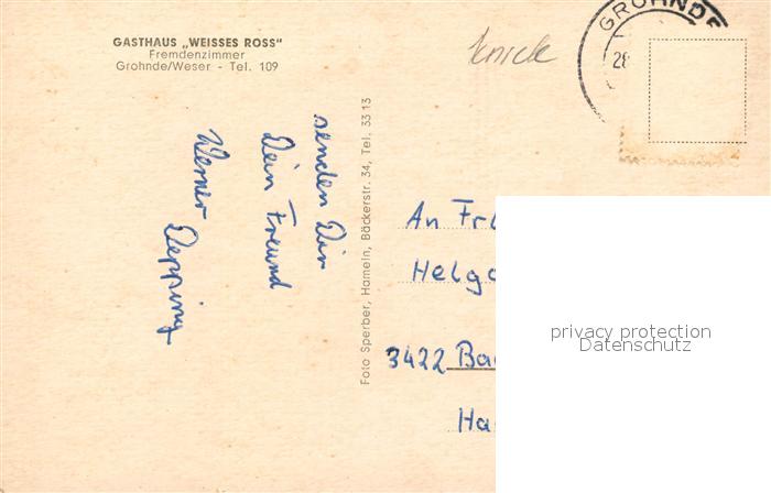 73126616 alte Postkarte Grohnde Gasthaus Weisses Ross postalisch gelaufen Erhaltung siehe scans [KathaD81] KatCode: 11110003252005