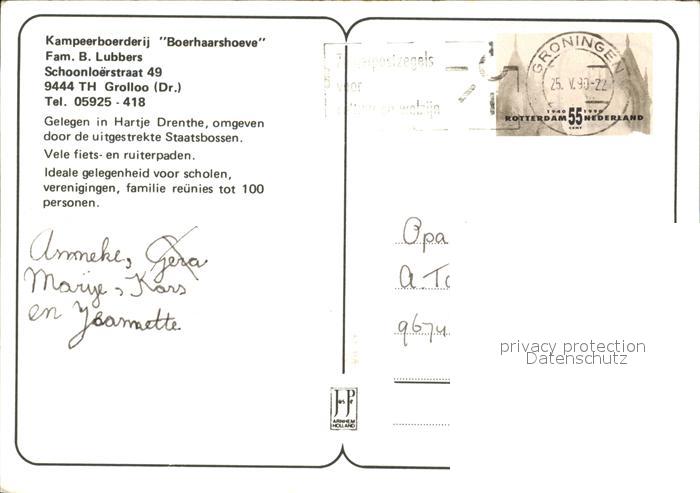 old postcard Grolloo Kampeerboerderij Boerhaarshoeve postalisch gelaufen Erhaltung siehe scans
