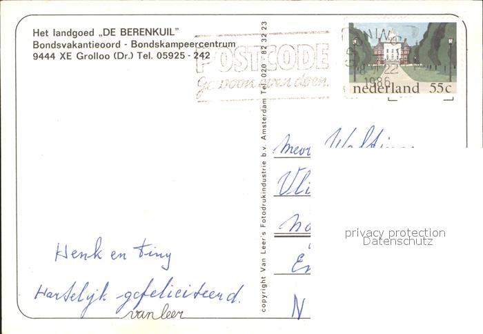 old postcard Grolloo Landgoed De Berenkuil Gaststube Bungalow Waldweg postalisch gelaufen Erhaltung siehe scans