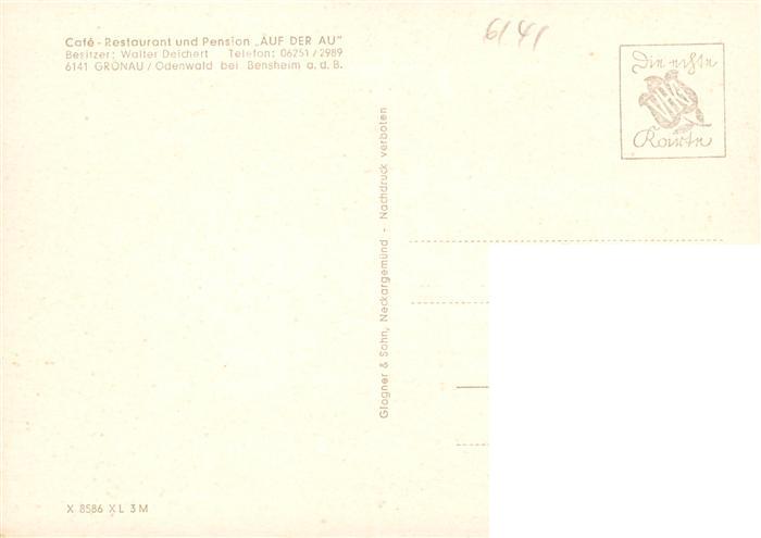 73872303 Gronau Odenwald Cafe Restaurant Pension Auf der Au postalisch nicht gelaufen Erhaltung siehe scans [FriedD77] KatCode: 11110006431002