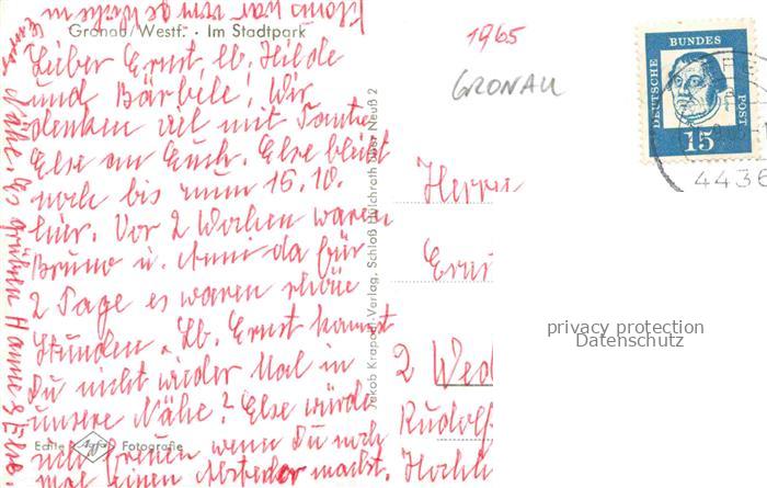 74154267 alte Postkarte Gronau Westfalen Borken NRW Stadtpark Teich Seerosen Fontaene postalisch gelaufen Erhaltung siehe scans [FriedD77] KatCode: 11110005554020