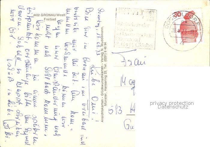 72304877 alte Postkarte Gronau Westfalen Freibad postalisch gelaufen Erhaltung siehe scans KatCode: 11110005554020