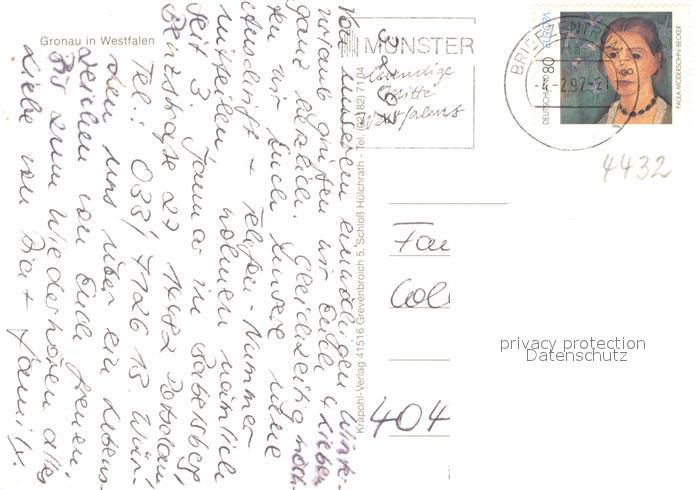 73673238 alte Postkarte Gronau Westfalen Fussgaengerzone Stadtplaetze Rathaus Krankenhaus postalisch gelaufen Erhaltung siehe scans [FriedD77] KatCode: 11110005554020