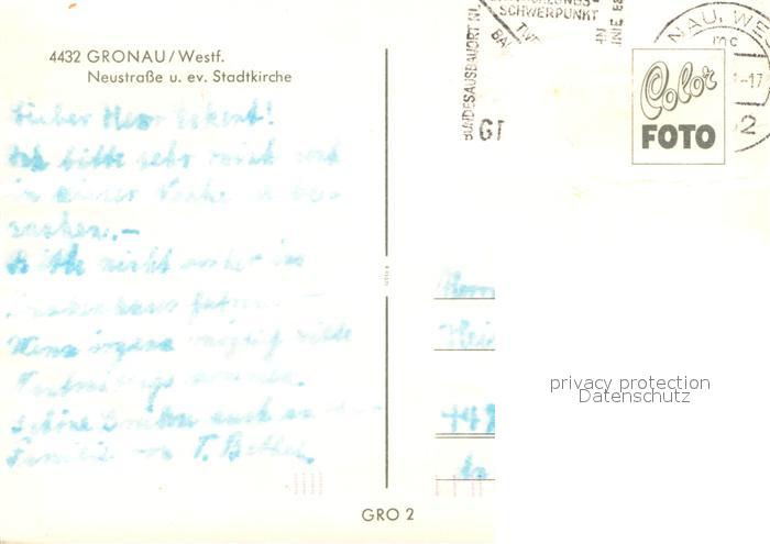 73673241 alte Postkarte Gronau Westfalen Neustrasse und evangelische Stadtkirche postalisch gelaufen Erhaltung siehe scans [FriedD77] KatCode: 11110005554020