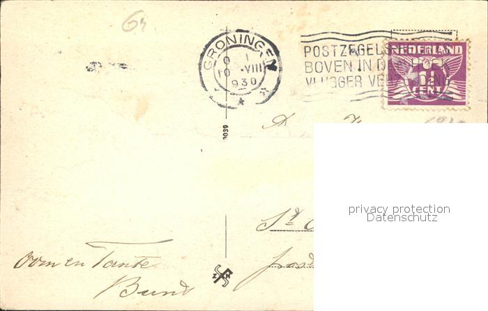 old postcard Groningen Academie postalisch gelaufen