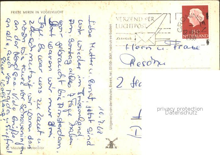 old postcard Groningen Friese Meren in Vogelflucht postalisch gelaufen