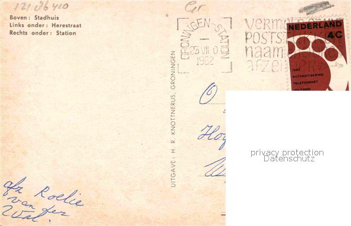 old postcard Groningen Stadhuis Herestraat Station postalisch gelaufen Erhaltung siehe scans [FriedD77]