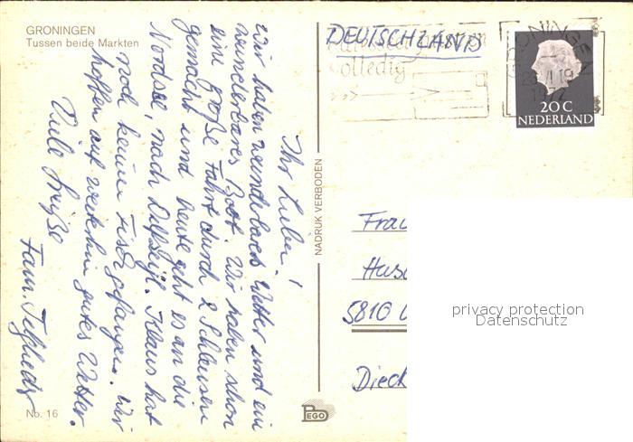 old postcard Groningen Tussen Markten postalisch gelaufen Erhaltung siehe scans