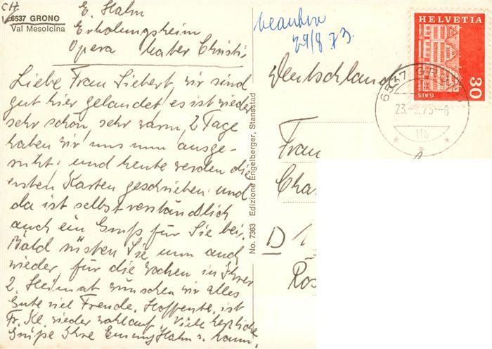 13908658 alte Postkarte Grono TI Val Mesolcina Panorama postalisch gelaufen Erhaltung siehe scans [WerneD78] KatCode: 11470100340268