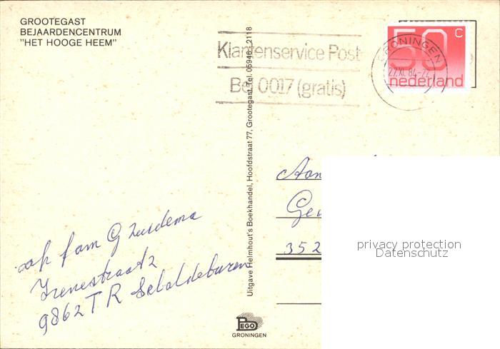 old postcard Grootegast Bejaardencentrum Het Hooge Heem postalisch gelaufen Erhaltung siehe scans