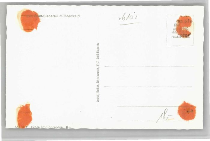 40673861 Gross-Bieberau Odenwald postalisch nicht gelaufen KatCode: 11110006432009