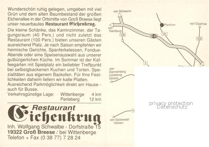 Gross Breese Wittenberge Hotel Restaurant Eichenkrug Gaststube Zimmer