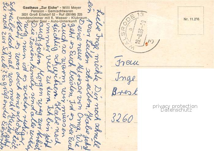 73747021 alte Postkarte Gross Eilstorf Ortspartie Gasthaus Zur Eiche postalisch gelaufen Erhaltung siehe scans [LiesaD40] KatCode: 11110003358022