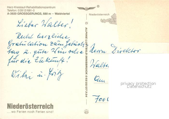 73235398 alte Postkarte Gross Gerungs Waldviertel Fliegeraufnahme Rehazentrum postalisch gelaufen Erhaltung siehe scans [LiesaD40] KatCode: 11390124032508