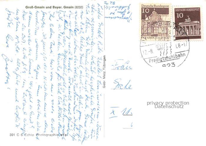 74025138 alte Postkarte Gross-Gmain und Bayerisch Gmain Panorama Alpen postalisch gelaufen Fliegeraufnahme Erhaltung siehe scans [FriedD77] KatCode: 11110009172114
