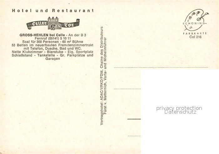 73119951 Gross Hehlen Hotel Restaurant Celler Tor postalisch nicht gelaufen Erhaltung siehe scans [KathaD81] KatCode: 11110003351006
