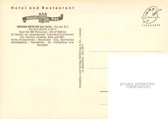 73749607 alte Postkarte Gross Hehlen Hotel Restaurant Celler Tor Gastraeume Foyer postalisch gelaufen Erhaltung siehe scans [WerneD78] KatCode: 11110003351006