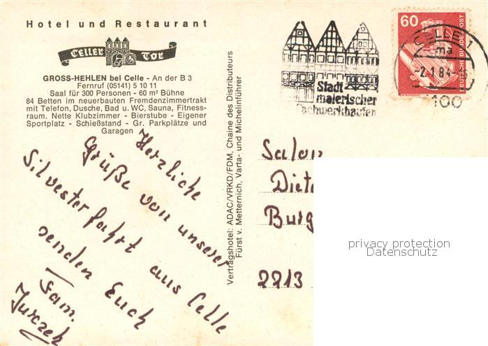 73756369 alte Postkarte Gross Hehlen Hotel Restaurant Celler Tor Saal Fremdenzimmer postalisch gelaufen Erhaltung siehe scans [FriedD77] KatCode: 11110003351006