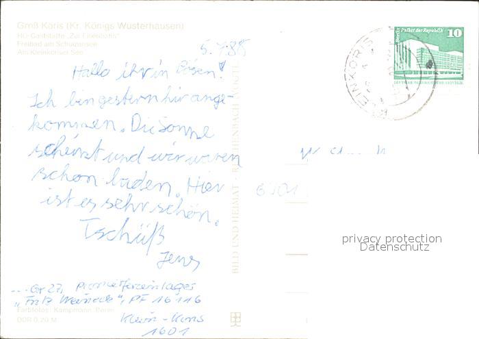 72393530 alte Postkarte Gross Koeris Gaststaette Zum Eisenbahn Schulzensee postalisch gelaufen Erhaltung siehe scans KatCode: 11110012061192