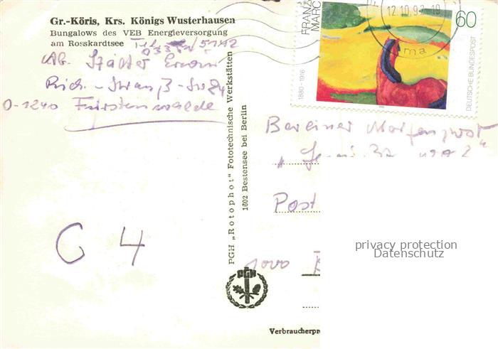 74022859 alte Postkarte Gross-Koeris Grosskoeris Dahme-Spreewald Brandenburg Bungalows des VEB Energieversorgung am Rosskardtsee postalisch gelaufen Erhaltung siehe scans [WerneD78] KatCode: 11110012061192