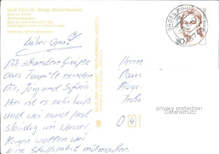 72321428 alte Postkarte Gross Koeris Kirche Moddergraben Camping postalisch gelaufen Erhaltung siehe scans KatCode: 11110012061192