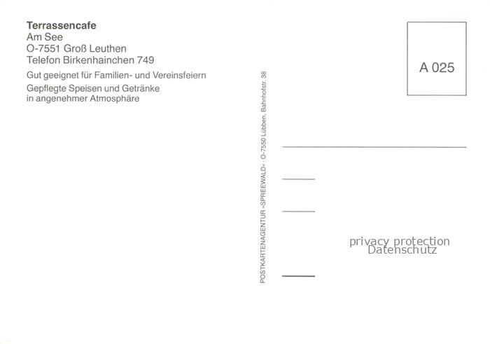 74026795 Gross Leuthen Grossleuthen Dahme-Spreewald Terrassencafé am See postalisch nicht gelaufen Erhaltung siehe scans [FriedD77] KatCode: 11110012061329