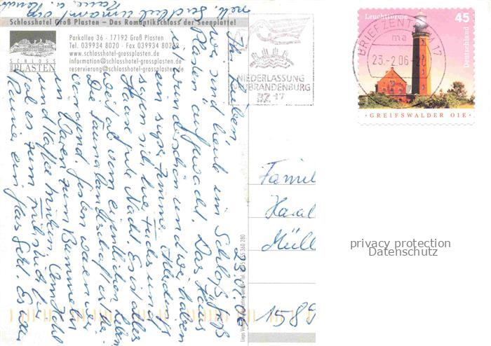 74029315 alte Postkarte Gross Plasten Schlosshotel Kutscherhaus Fremdenzimmer Mecklenburgische Seenplatte postalisch gelaufen Erhaltung siehe scans [FriedD77] KatCode: 11110013056019