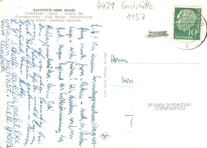 73695150 alte Postkarte Gross Reken Gaststaette Herm Wilkes postalisch gelaufen Erhaltung siehe scans [WerneD78] KatCode: 11110005554044