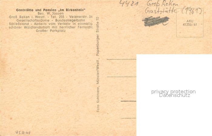 73704335 Gross Reken Gaststaette Im Birkenhain postalisch nicht gelaufen Erhaltung siehe scans [LiesaD40] KatCode: 11110005554044