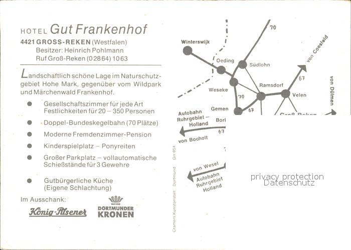 72293321 Gross Reken Hotel Gut Frankenhof postalisch nicht gelaufen Werbekarte (keine Postkarte) Erhaltung siehe scans KatCode: 11110005554044