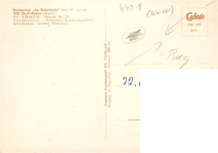 73904376 alte Postkarte Gross-Reken Restaurant Im Birkenhain Fliegeraufnahme postalisch gelaufen Erhaltung siehe scans [WerneD78] KatCode: 11110005554044