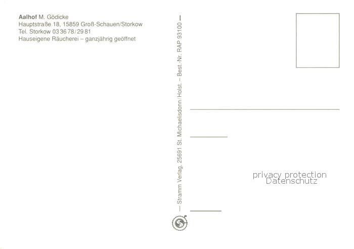 73642416 Gross Schauen Aalhof Goedicke Aalraeucherei Restaurant postalisch nicht gelaufen Erhaltung siehe scans [FriedD77] KatCode: 11110012067481