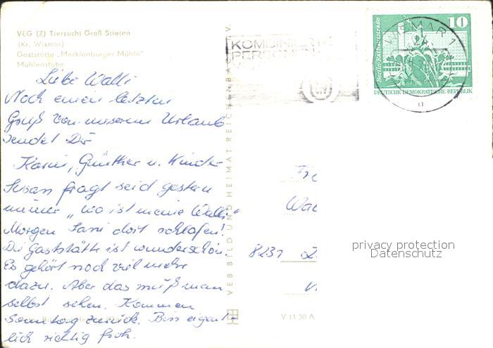 72152447 alte Postkarte Gross Stieten Gaststaette Mecklenburger Muehle Muehlenstube postalisch gelaufen Erhaltung siehe scans KatCode: 11110013058042
